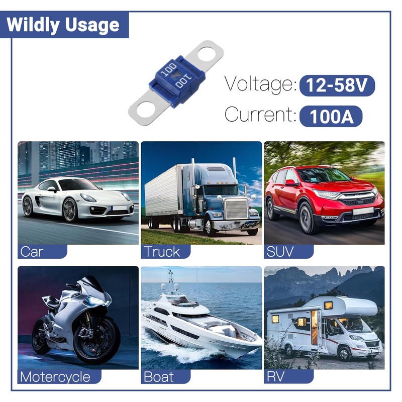 - Reliable circuit protection: idi Fuse ensures reliable protection of the circuits of your vehicle and thus increases safety and performance. Rated Voltage: 12V-58V; Rated Current: 100A
