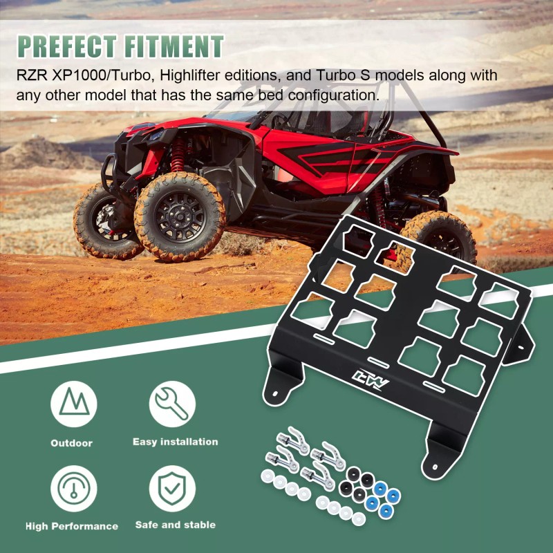 - 【Versatile Use】Whether you're planning a weekend camping trip or a long-distance off-road adventure, our packout mount which fits for RZR XP 1000/XP4 1000 provide the versatility and reliability you need to keep your coolers and boxes securely in place.