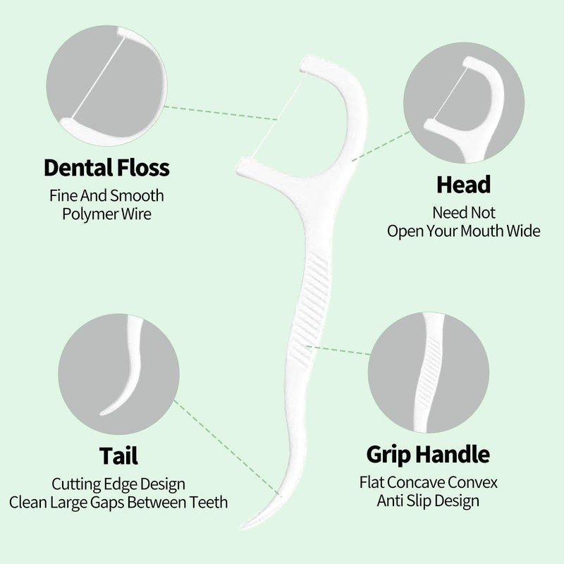 - Hochwertige Materialien: Der Griff dieses zahnseide Sticks besteht aus hochwertigem Polyethylen, was ihn flexibler und weniger bruchanfällig macht. Der Teil der Zahnseide besteht aus ultradünnem Polyethylenfaden, der verschleißfester, abgerundeter und sicherer ist und das Zahnfleisch nicht beschädigt. Darüber hinaus belastet es die Zähne mehr und entfernt hartnäckigen Belag und Speisereste.