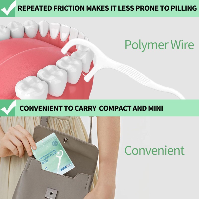 - Leicht zu transportieren: Diese Zahnseide mit hoher Kapazität ist kompakt und passt problemlos in Rucksäcke, Taschen, Koffer und mehr. Ob für zu Hause, auf Reisen, im Freien oder einfach nur, um den Mund immer sauber zu halten, diese Zahnseide Sticks sind die perfekte Wahl für alle, die eine tragbare und praktische Interdentallösung suchen.