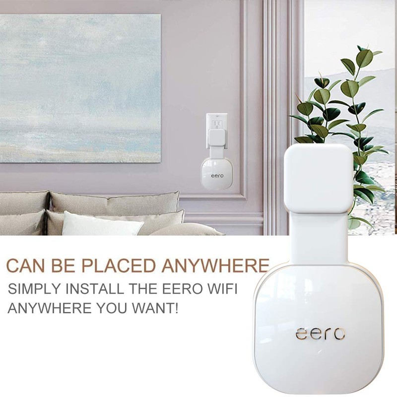 - 【Easy to Move】All messy wires are hided on the back of the eero 6 mesh plug mount, you can plug in your eero wifi router to any electrical outlets in your home and can easily be moved from room to room, making the setup of network much more simple.