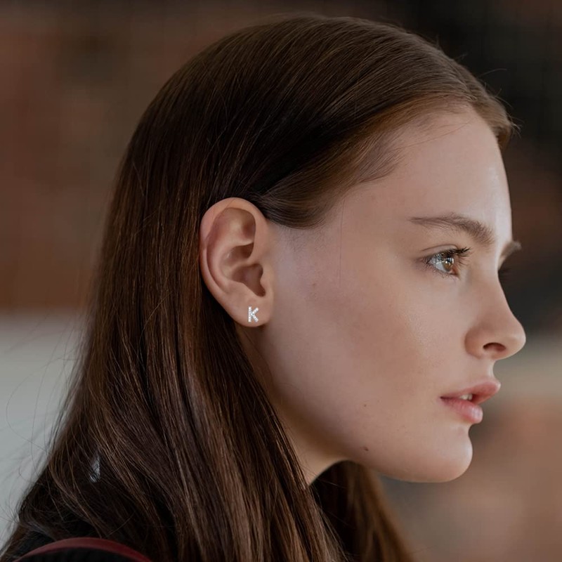 TIZU Initial K Stud Earrings for Girls Hypoallergenic S925 Sterling Silver Post White Gold Plated Alphabet Letter Earrings for Women kids Gifts