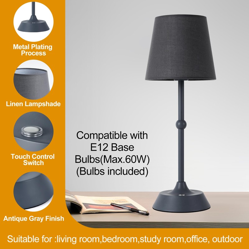 TIZURD Portable Dimmable Desk Lamp LED Cordless Grey Table Lamp Battery Powered Touch Control Table Lamp for Dining RoomBedroom Bar Camping Balcony.(LED Bulb Included)