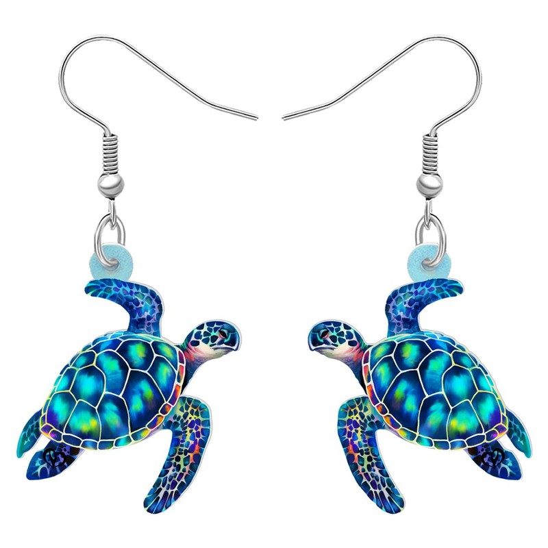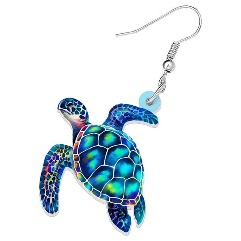 TIZURO Acrylic Blue Cute Sea Turtle Earrings Hawaiian Summer Beach Ocean Animals Dangle Novelty Jewellry For Women Turtle Lovers Charms Party Gifts (Blue)