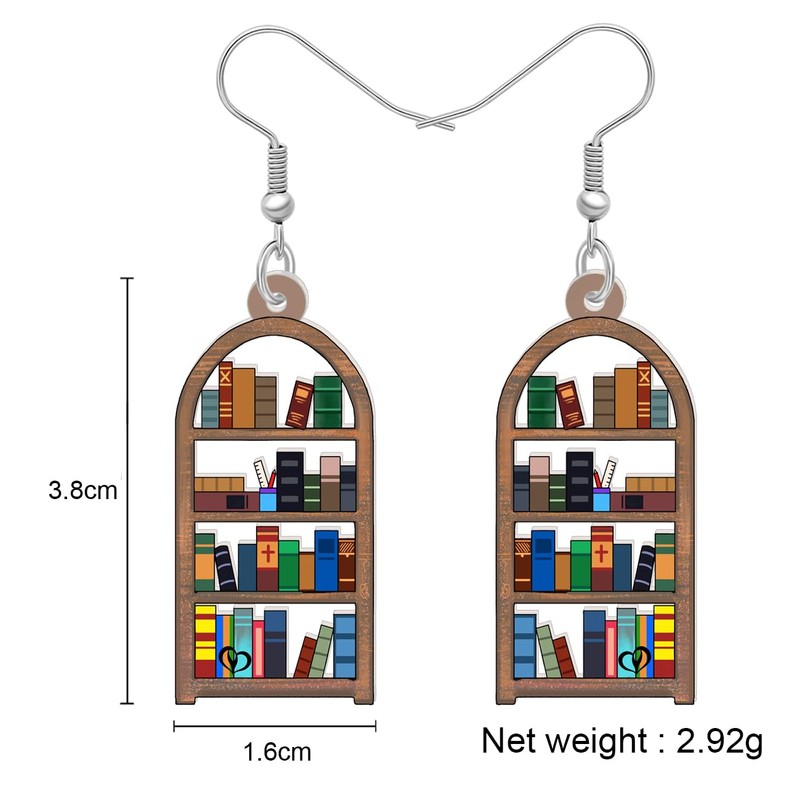 TIZURO Back To School Acrylic Cute Stackable Books Earrings Fun Bookshelf Dangle Novelty Jewellry For Women Librarian Teacher's Day Charms Gifts (Coffee)