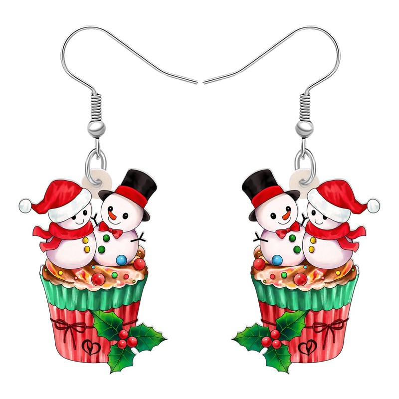 - Theme Design: These adorable earrings feature jolly snowmen perched atop Christmas cupcakes, capturing the spirit of the holiday season