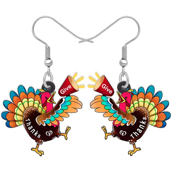 TIZURO Thanksgiving Acrylic Cute Pilgrims Hat Turkey Earrings Funny Chicken Animals Dangle Novelty Jewelry For Women Gifts (Orange)