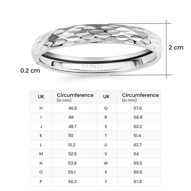 - 9ct Gold Ring: Appealing featured Ring of superlative quality and artisanship in a ravishing Band design, is finely crafted in 9K White Gold. Plain jewellery can be matched with an assortment of apparels and can be worn on any auspicious occasion.