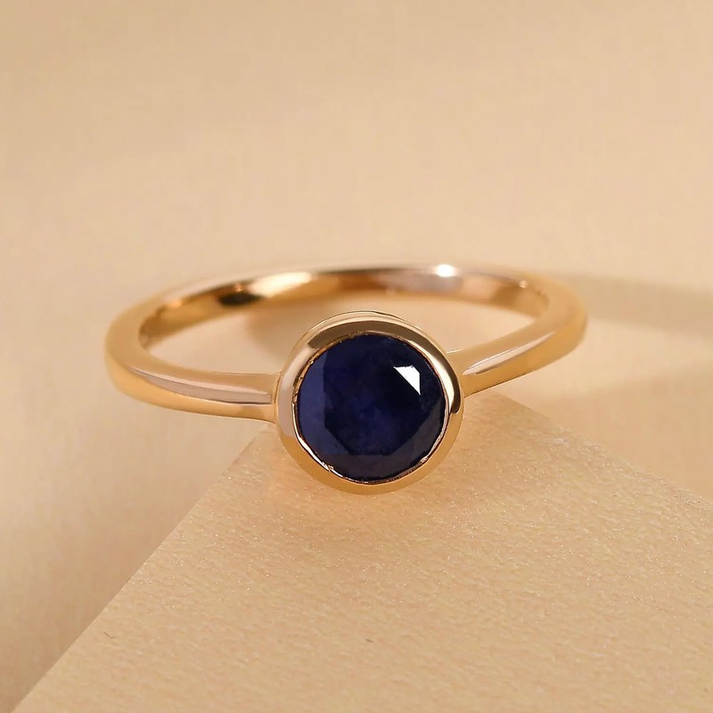 TJC Blue Sapphire Solitaire Ring for Women Engagement Ladies Rings in 14ct Yellow Gold Plated 925 Sterling Silver Size O September Birthstone Metal Wt. 1.8 Grams