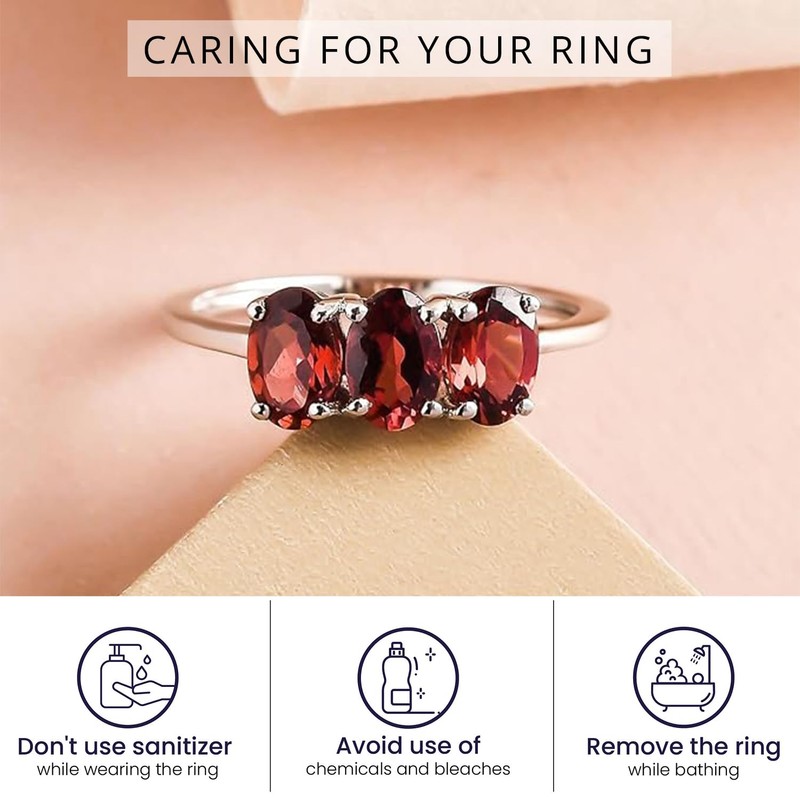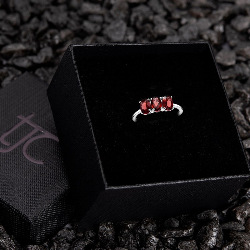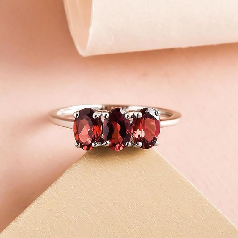 - Features: This featured stunning trilogy ring is bejewelled with garnet and designed with the best quality platinum plated 925 sterling silver.