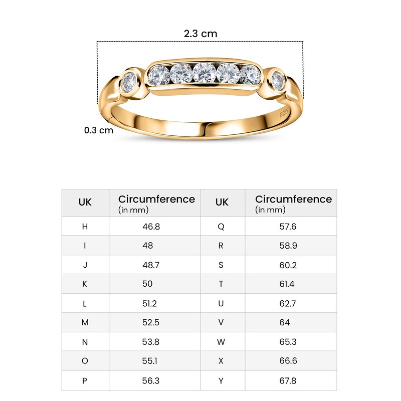 TJC Moissanite Seven Stone Ring for Women in Yellow Gold Plated 925 Sterling Silver Size U Channel Setting Metal Wt. 1.65 Grams