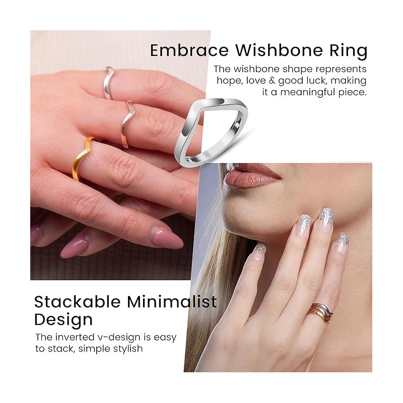 - Wishbone Rings for Women: The silver rings for women feature V shaped Wishbone design with 2mm thickness. Wishbone Ring represents love & luck and is believed to bring two people closer together. The ring has various option to choose from sterling silver ring size W, sterling silver ring size Q and so on, choose the size that fits you perfectly.