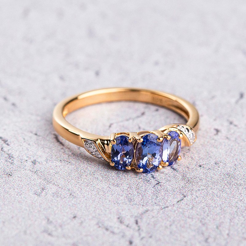 TJC Tanzanite Three Stone Ring for Women in 14ct Gold Overlay 925 Sterling Silver Forever Together Size Q Blue Coloured December Birthstone