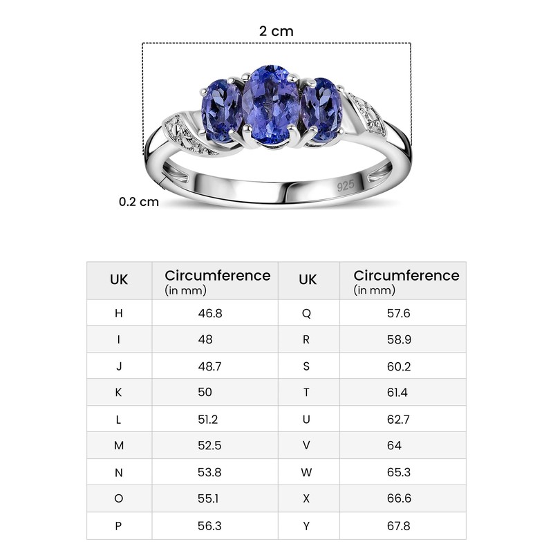 - Features: This featured stunning three stone ring is bejewelled with tanzanite and designed with the best quality platinum plated 925 sterling silver.