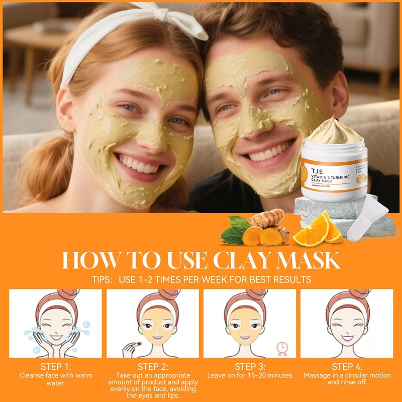 - 【Easy to Use】TJE turmeric vitamin c clay mask comes with a soft mask brush, making your application more convenient. Steps: After washing your face, apply the mask evenly to your face, avoiding eyes and lips. Wait 10-15 minutes to dry it, then wipe it and rinse thoroughly with water. After drying, use toner and your daily skin care products. We recommend using clay mask 1-2 times a week or according to your skin type needs