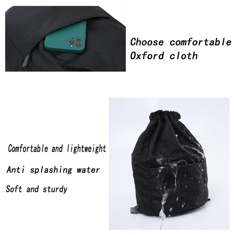 - Material: This compact drawstring backpack is made of Oxford cloth, which is waterproof, wear-resistant, scratch-resistant, with good breathability and waterproof. You don't need to be afraid of the drawstring bag will be wet by rain, even outdoor adventure or rainy day traveling, you can also keep the internal items dry and neat