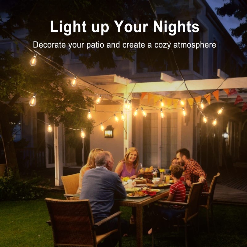 TJOY Solar String Lights Outdoor Patio Lights, 50ft Solar Powered Waterproof String Lights, 2700K Warm White Hanging Lights with 12pcs Shatterproof S14 E12 Bulbs for Patio, Backyard, Porch, Outdoors