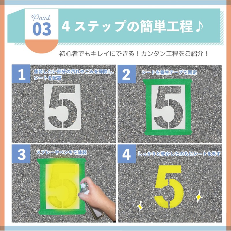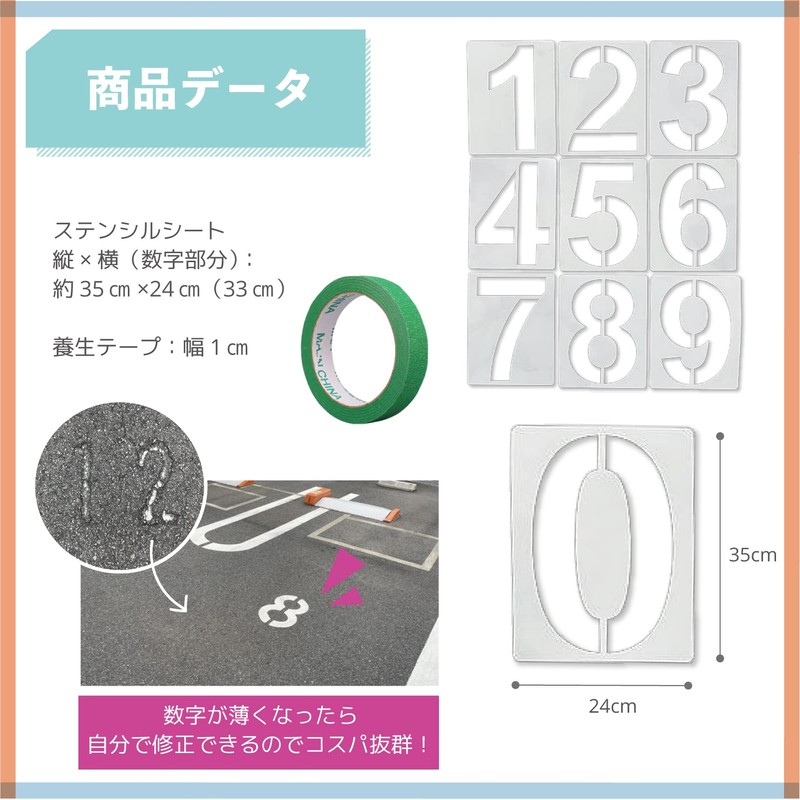 - A set of numbers stencils that can be easily DIY for painting numbers in parking lots and signs. It is easy to use on surfaces such as asphalt and signs, and it is easy to paint with paint or spray, so anyone can finish it clean!