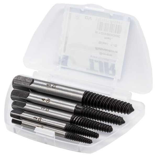 This kit includes five extractors in sizes #1 through #5, covering a variety of fastener sizes from M3 to M8. With this comprehensive set you have the right puller for different applications, ensuring versatility and comfort.