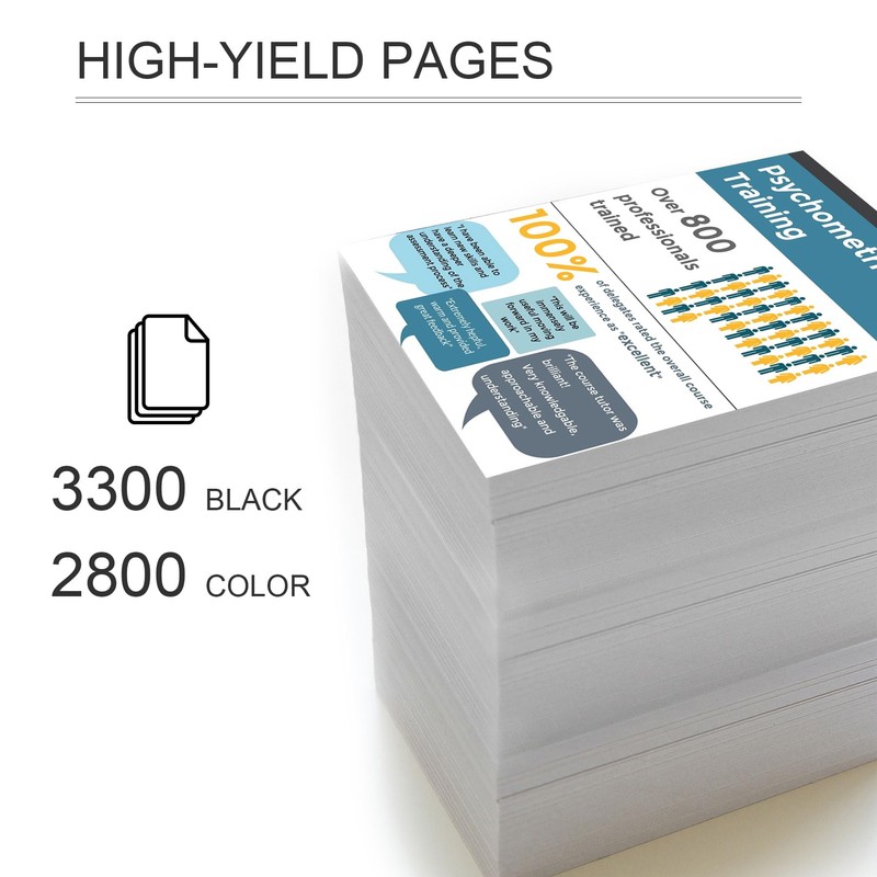 - High page rate : 1 pack Black toner can print 3,300 pages & 1 pack Color toner can print 2,800 pages (5% coverage).