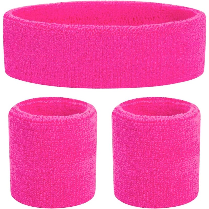 TK Gruppe Timo Klingler 3 in 1 Schweißband pink Set mit Stirnband - als Accessoire Vokuhila Kostüm zu Retro neon 80er 90er Outfit Fasching & Karneval