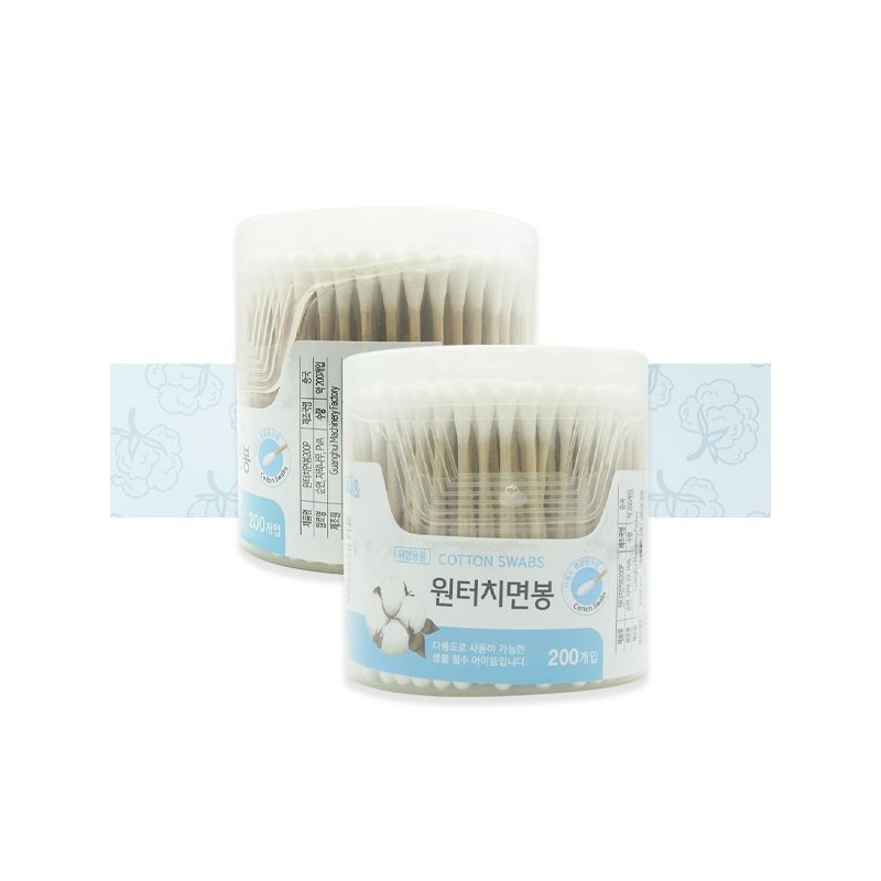 TK One-Touch Round Pure Cotton Thin Swabs 200pcs Large Pack 10ea