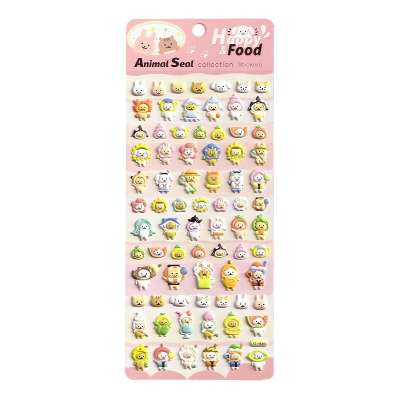 • 【可愛さ満点!動物×食べ物の立体シールセット】 あなたの心をくすぐる、キュートなシールが登場! かわいい動物たちが、美味しそうな食べ物とコラボ! ウサギ×ケーキ、ネコ×おにぎり、パンダ×中華…見ているだけで癒されるデザインがいっぱい! 立体感のあるぷっくりとしたシール – 手触りも楽しめる!