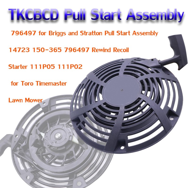 - TKCBCD Pull Start Assembly Compatible With BS 796497 14723 150-365 rewind starter assembly can be replaced in lawnmower/power washer and works perfectly. for Toro Timemaster Gas Lawn Mower Model: 21199. Power Washer Parts BS-796497