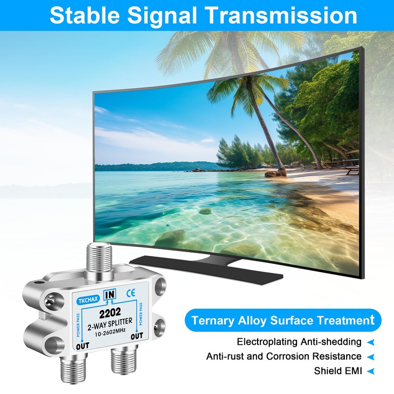 - All-in-One Compatibility: Our coaxial splitter seamlessly connects with analog and digital devices,which can split one input signal into two balanced output signals with optimal signal strength and supporting MoCA configurations for HDTV, Cable TV, Satellite, Antenna, and High-Speed Internet, ensuring versatility for your home setup.