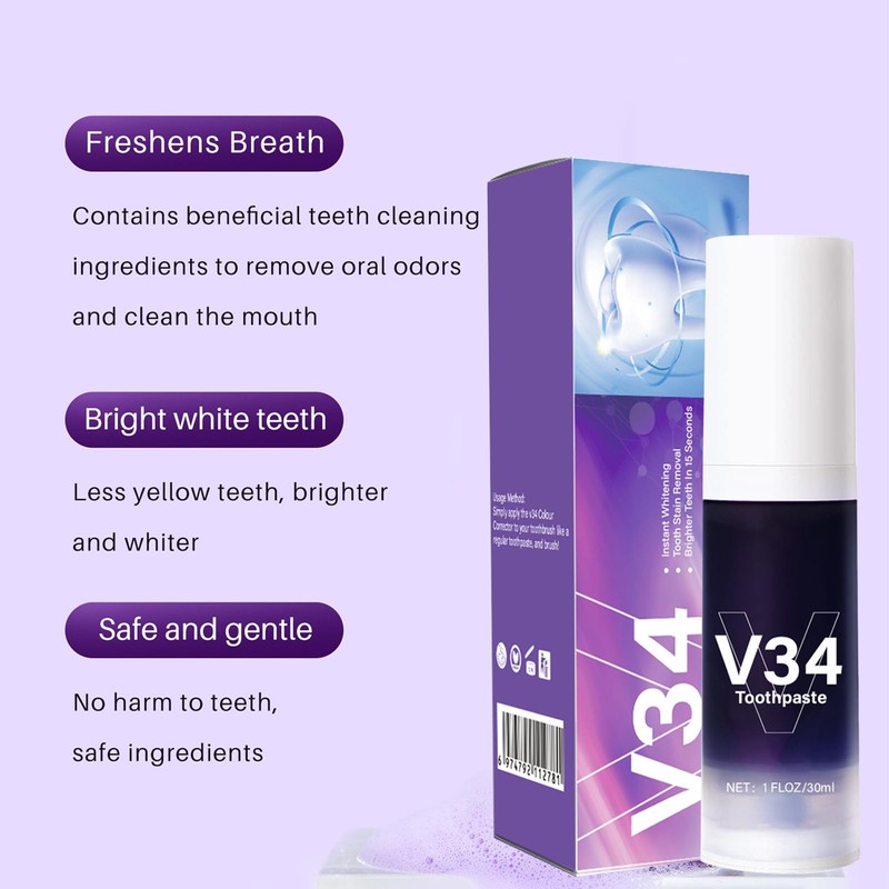 Tkekruh 2PC Toothpaste 30ml, Teeth Whitening Booster, Purple Toothpaste, Whitening Teeth Whitening, Gum Repair Toothpaste, Ensures Effective Removal of Discolouration, Gentle Care of Gums