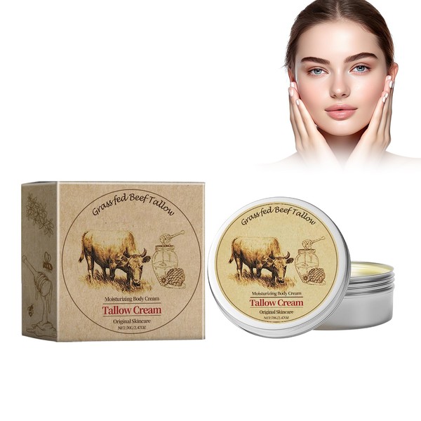Tkekruh Beef Tallow Cream 70 g, Moisturising Cream, for Face Smooth Skin Moisturising, Reduces Dry Lines for the Face, Body Moisture Face