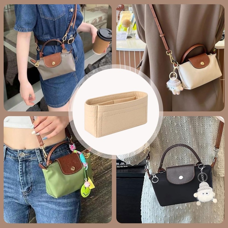 - DIMENSIONS: This bag organiser is designed for Longchamp mini bag, mini size: (L)16x(W)4.5x(H)8 cm = (L)6.3x(W)1.8x(H)3.1 inches.