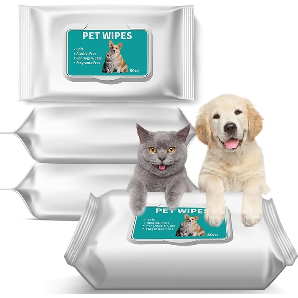 TKOOFN 80 count Dog Grooming Wipes Deodorize Hypoallergenic Pet Cat Cleaning Dry Bath
