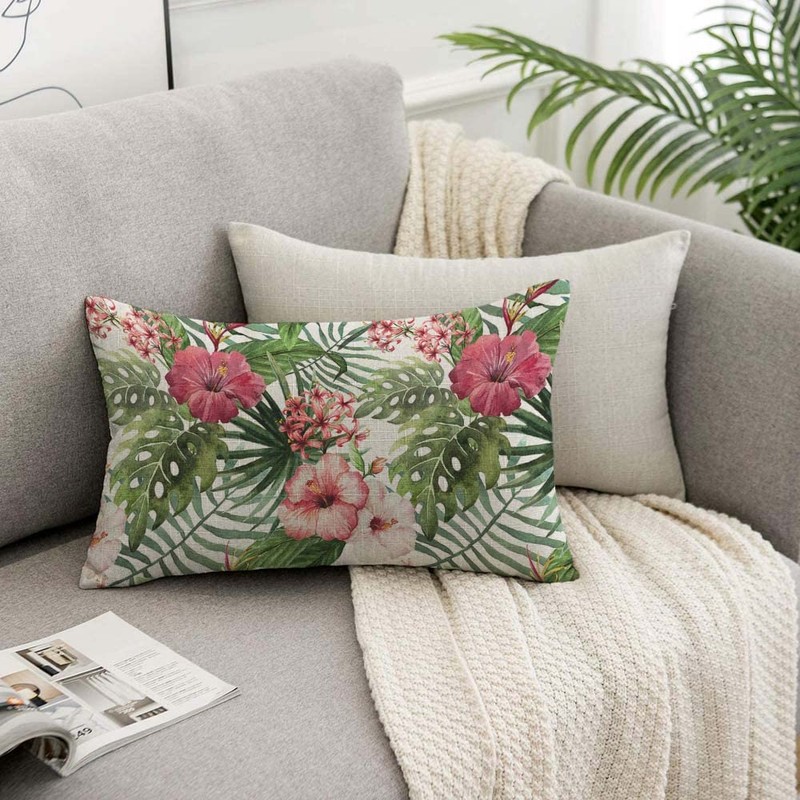TKS MITLAN Tropical Flower Throw Pillow Case Cushion Cover Watercolor Summer Hawaii Palm Tree Leaf Linen Couch Bed Sofa Car Waist Cushion Cover 12 x 20 inch