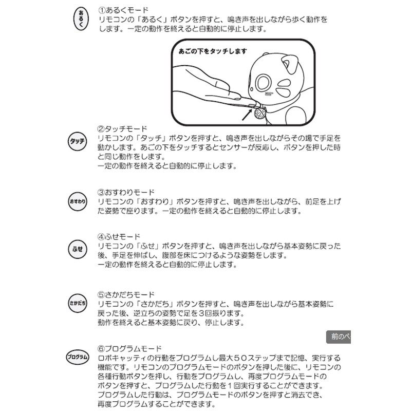 - 5. Sakadachi Mode: Shake your feet in a reverse position. 6. Program Mode: Memory up to 50 steps of operation 7. Response Mode: Responds to sound and operates