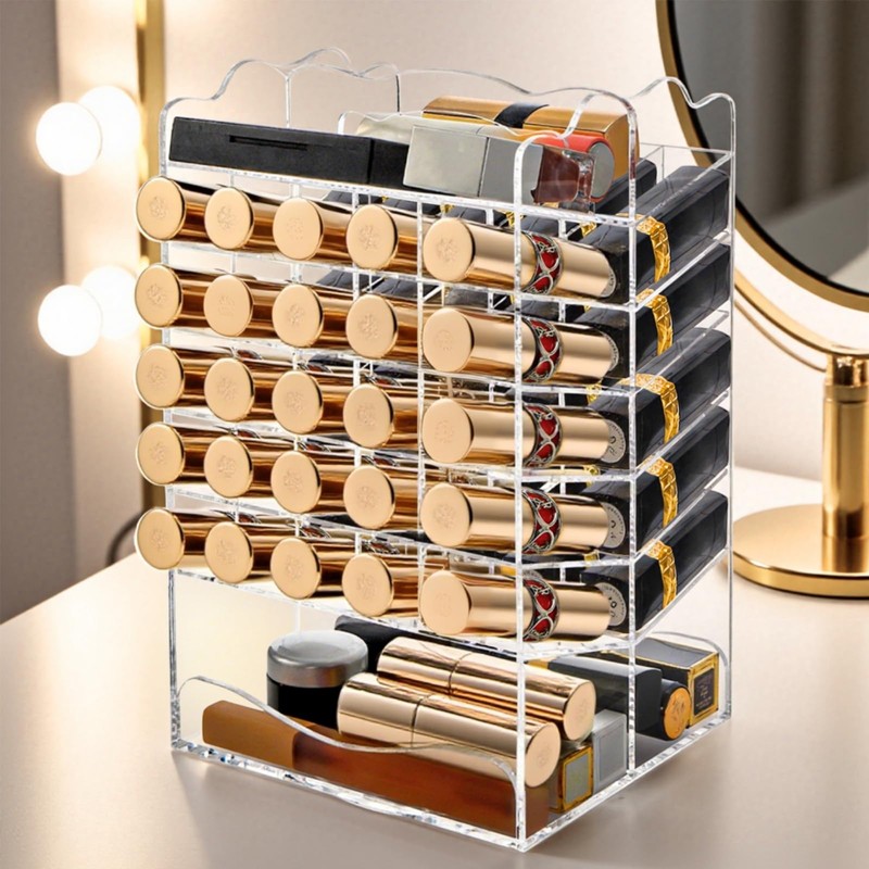 - High Quality: Our acrylic rotating lipstick organizer is made of thick acrylic material, which ensures lipstick holder durability and security from damage. The reinforced craftsmanship makes your lipsticks stored securely in place, even when the organizer is moved or transported.