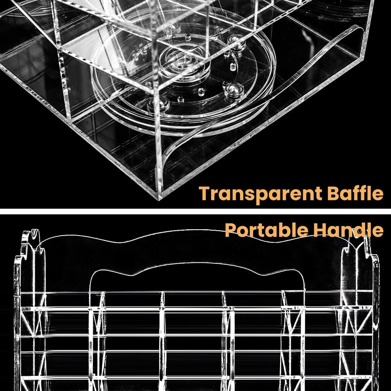 - Rotating Base: The lipstick display stand comes with a rotatable base, allowing you to turn and view your lipstick from a whole perspective. Portable handle is convenient for you to move. The transparent baffle effectively prevents cosmetics from falling out when rotating.