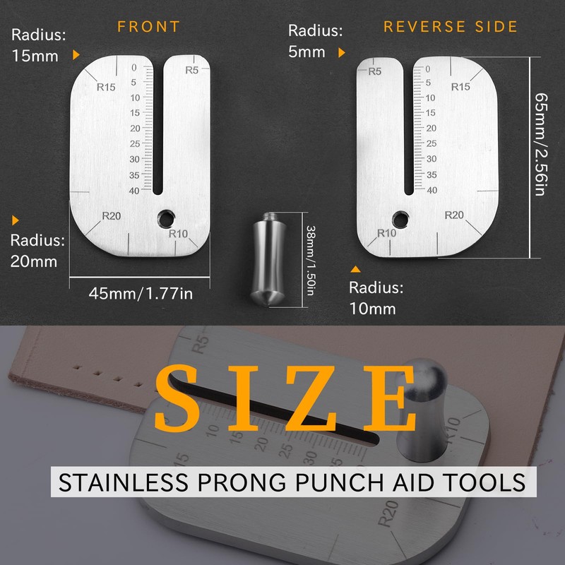 - Stainless Steel Material with Smooth Surface: The leather prong punch aid plate thickness is made of solid 4mm stainless steel forging, and the surface has been precision polished, with a smooth surface and clear scale engraving. The edges are finely ground and can be used as a fillet cutting ruler.