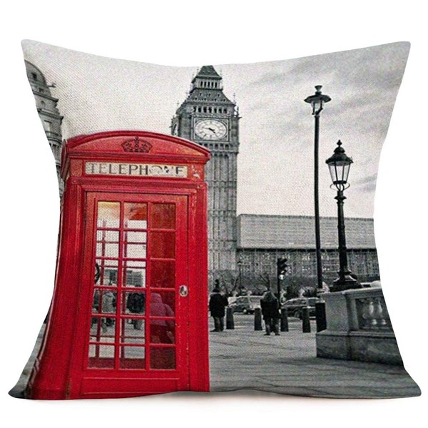 Tlovudori London City Throw Pillow Case Red Telephone Booth Grey Streetscape Decorative Cotton Linen Square Cushion Covers Standard Pillowcase Couch Sofa Bed Men/Women 18x18 Inch (Telephone Boot)