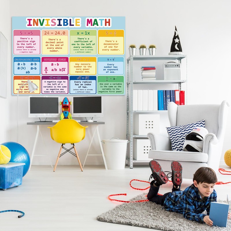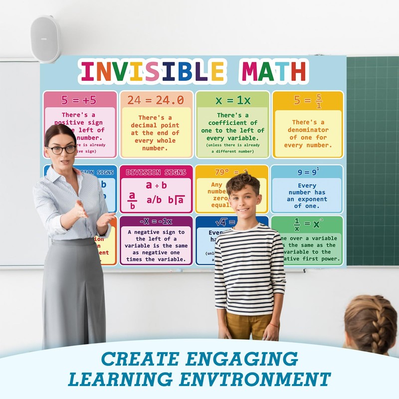 Tlpmsk Educational Math Posters,Large Invisible Math Poster with Dot Glue,13....
