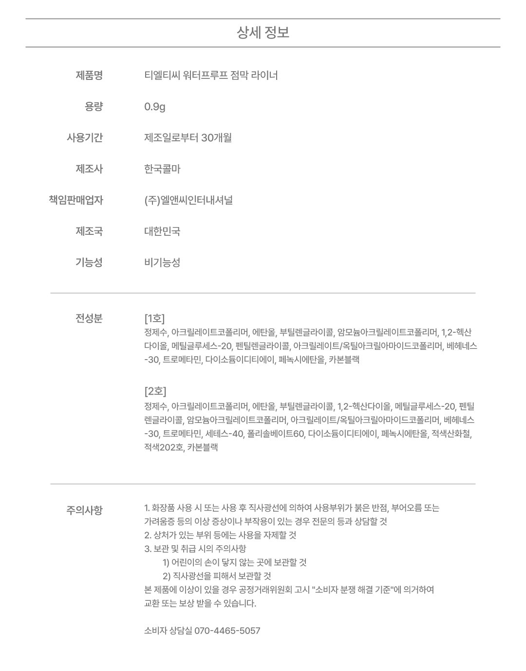 (TLTC)티엘티씨 워터프루프 점막 라이너 2개 SET (TLTC) TLC Waterproof Mucosal Liner 2-Piece Set
