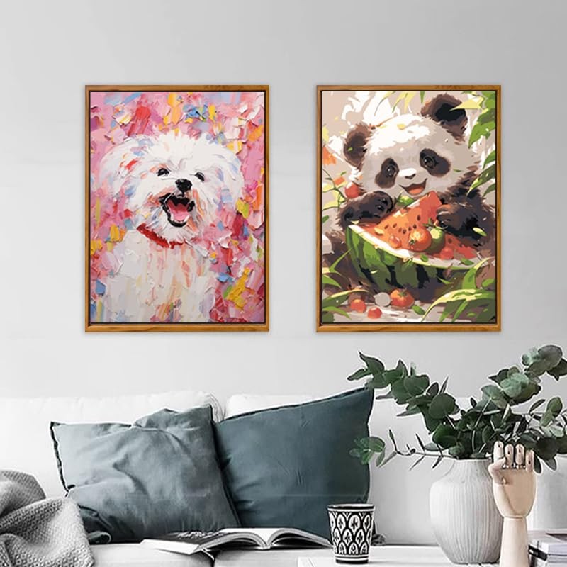 TMBEAR Paint by Numbers Kit for Adults 16x20 Inch (2 Pack) - Cute Puppy & Panda DIY Canvas Art, Complete Set with Brushes & Paints in Gift Box - Relaxing Stress Relief Craft for Beginners and Kids