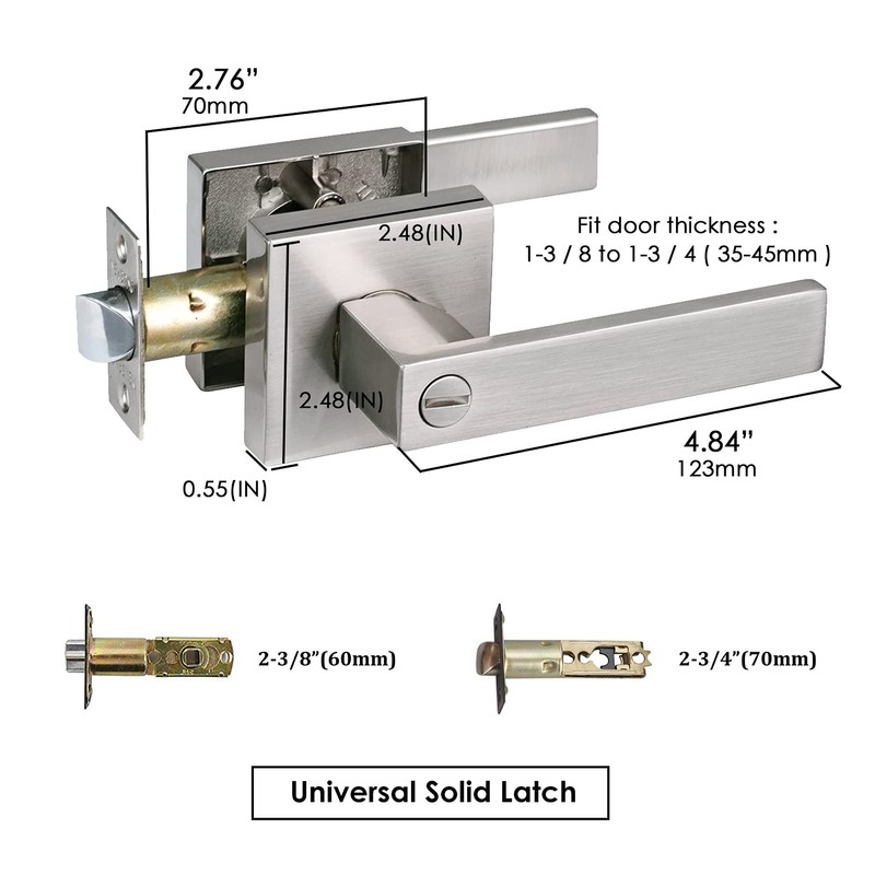 - 【Size】Adjustable Backset:2-3/8 inch or 2-3/4 inch (60mm or 70mm); Fits doors thickness:1-3/8 inch to 1-3/4 inch (35mm to 45mm)