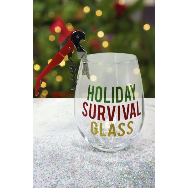 TMD Holdings TMD Holiday Survival Glass Oversized Wine Glass with Opener
