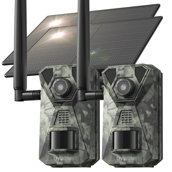TMEZON 2 Pack 4K Trail Camera, 48MP Game Camera with Solar Panel, WiFi Bluetooth