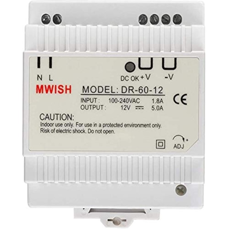 • Maximum power of 60 watts (12 V 5 A), mounting type (indoor): DIN rail