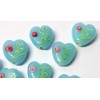 TMGP 10 Lampworked Glass 15x15x7mm Light Aqua Blue Hearts with Roses & 2mm Hole *