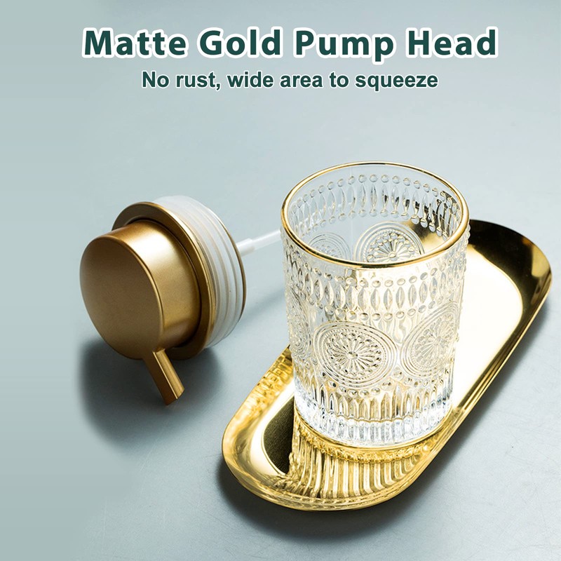 💕 Liquid Pump Head, Not Foaming With matte gold plastic pump top, Tmore lotion soap dispenser looks so much classier on the bathroom counter. The raised decorative design on the glass is nice if you do need to pick it up with wet hands, it will not slip out of your grasp.