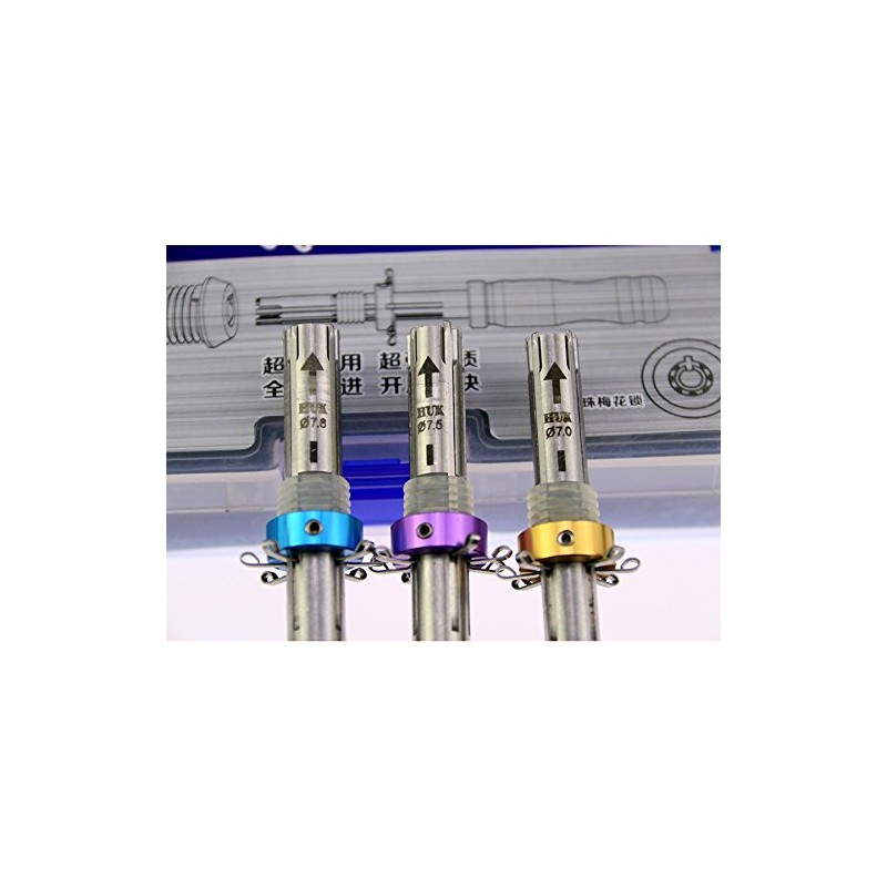 • 3piece Huk tubular lock pick set,there are three sizes,7.0mm,7.5mm,7.8mm