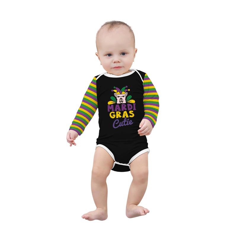 TMSD Infant Boys Mardi Gras Long Sleeve Cotton Onesie Bodysuit 0-3 Months